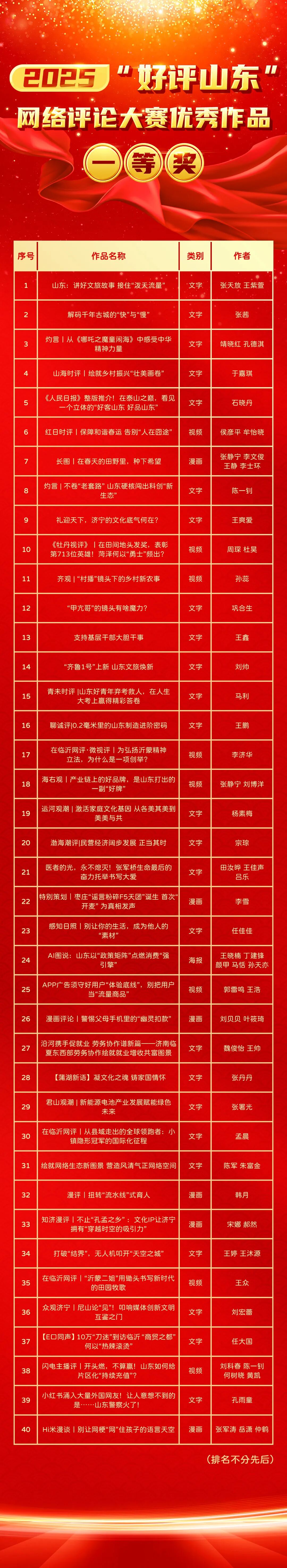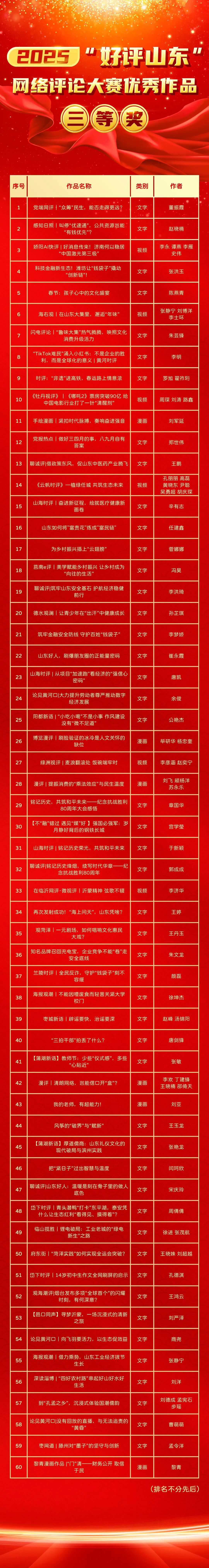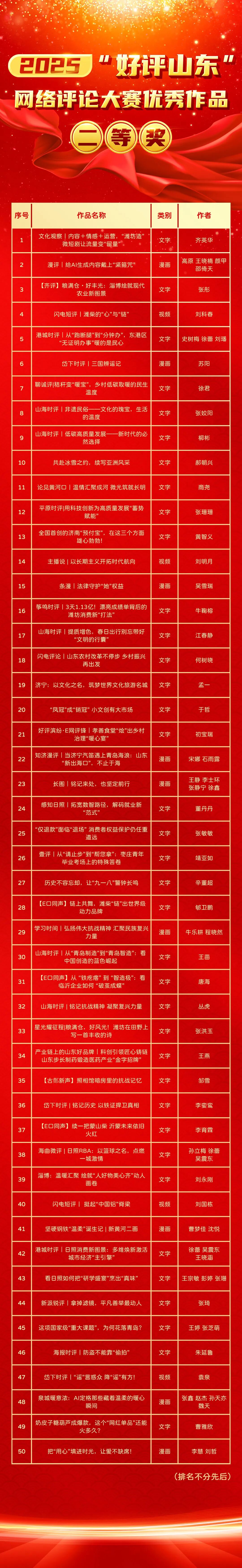 附:2025“好评山东”网络评论大赛获奖名单