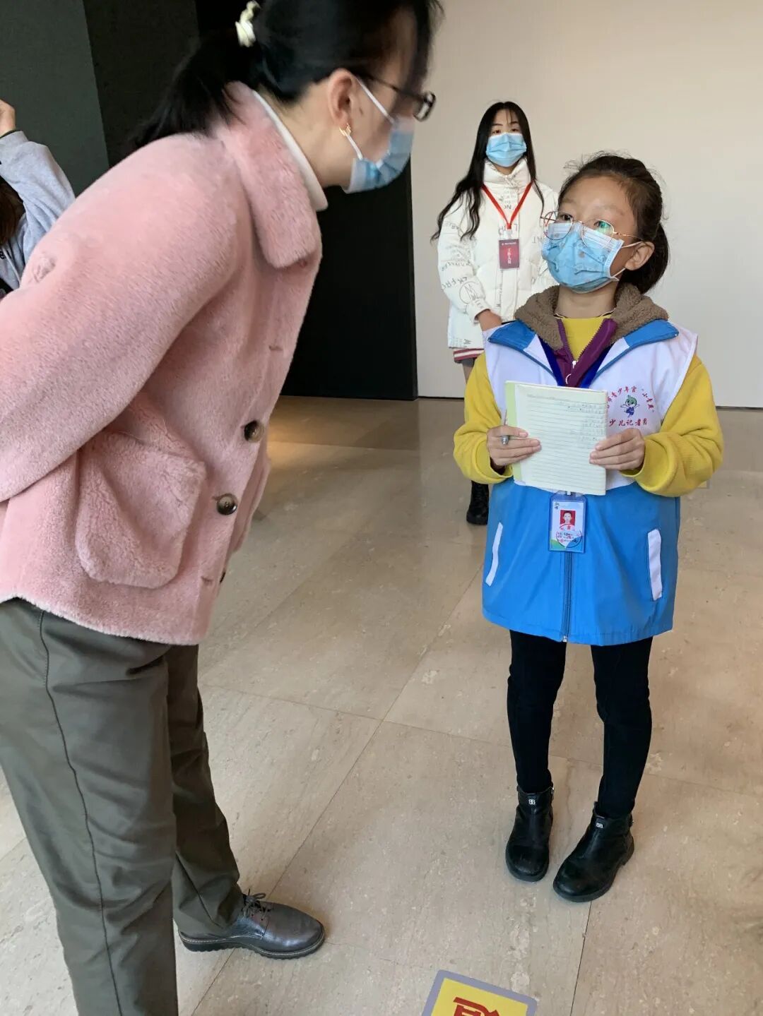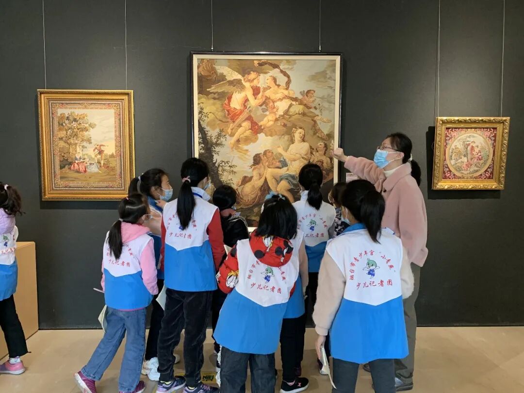 “李老师,烟台绒绣有多少年的历史了?”“这些窗花剪纸,为什么不是一个整体而是一条一条的呢?”……小记者们边观察边提问。“20世纪初,绒绣从欧洲引进烟台,至今已经有上百年的历史了。”“古代的窗户与咱们现在的窗户形状不同,一条一条正好可以贴到一扇一扇的窗户上。”讲解员李老师对小记者的问题一一给予了解答。小记者们都受益匪浅。