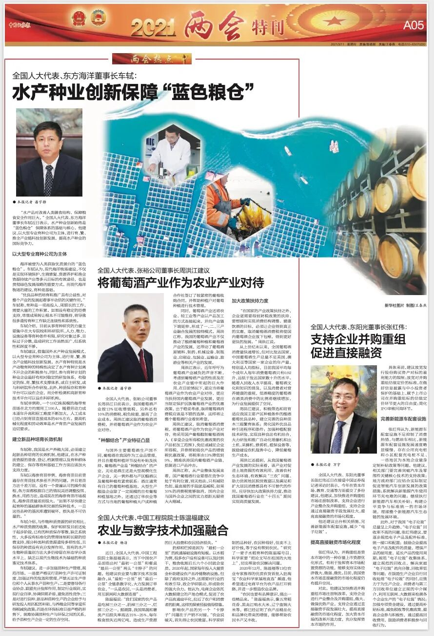 3月5日,《葡萄酒商业观察》发布对周洪江代表的报道,指出——