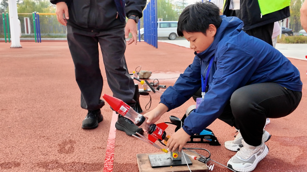 “为了这次比赛,我准备了一个月。刚刚水火箭打靶时,第一次有点紧张没发挥好;第二次我沉下心来,重新测算角度、调整气压,没想到成绩比平时还好。”获得水火箭50米打靶赛冠军的小朋友介绍说。赛场上,选手们全力以赴展现技艺,用一次次精准操作诠释着对航模运动的热爱;赛场边,由烟台市航模协会资深专家、体育院校专业教师组成的裁判团队,严格按照竞赛规则逐一核对参数、细致记录每一项成绩,全程采用双人复核机制确保赛事公平公正。志愿者团队则穿梭于各个区域,及时提供器材搬运、秩序引导、应急保障等服务,成为赛场内外一道亮丽的风景线。