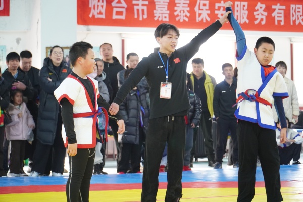 烟台融媒11月29日讯(记者 刘宇)11月29日,烟台市第十五届全民健身运动会暨烟台市第五届中国式摔跤比赛在烟台参参堂海参文化展览馆举办。本次比赛由烟台市体育局、烟台市体育总会主办,烟台市摔跤柔道协会承办,吸引了来自全市各区市近百余名运动员同台竞技,年龄跨度从7岁到36岁,以跤会友,展现中国式摔跤的独特魅力与全民健身的蓬勃活力。