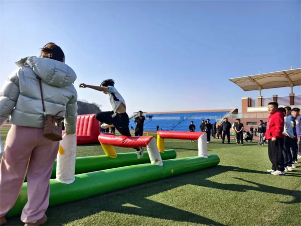 动感五环的赛场上,队员们默契配合,推动彩色圆环大步向前,步伐间尽显训练打磨出的节奏感;财源滚滚项目里,大家步调一致地操控充气履带,你追我赶中满是欢声笑语。赛场边,啦啦队的呐喊声、加油声震天动地,此起彼伏的欢呼声让整个操场都沸腾起来;摔倒了就笑着爬起,落后了就奋起直追,大家在挥洒汗水的同时,也收获了满满的友谊与凝聚力。