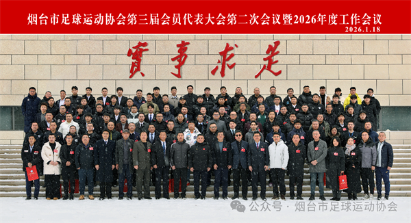 1月18日上午,烟台市足球运动协会第三届会员代表大会第二次会议暨2026年度工作会议在中共烟台市芝罘区委党校召开,协会各会员代表共150人参加会议。