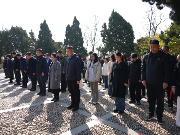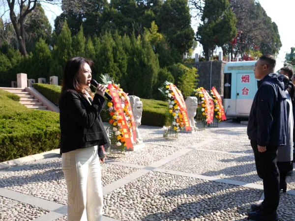烟台市新的社会阶层人士联谊会副会长梁巧艳代表发言,表示将赓续红色血脉、坚定理想信念,在新时代新征程中勇担责任、主动作为。随后,全体人员脱帽肃立、默哀致敬,向为民族独立、人民解放和国家富强英勇献身的革命先烈表达深切缅怀。
