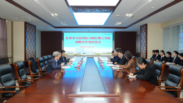 胶东在线11月17日讯(通讯员 宫欣 实习编辑 单煜媛)11月11日,烟台理工学院与东营市人民医院战略合作签约仪式在东营市人民医院会议室举行。烟台理工学院党委书记姜华平,东营市人民医院党委副书记袁勤德,烟台理工学院健康学院党政负责人出席仪式。东营市人民医院党委副书记周小明主持仪式。