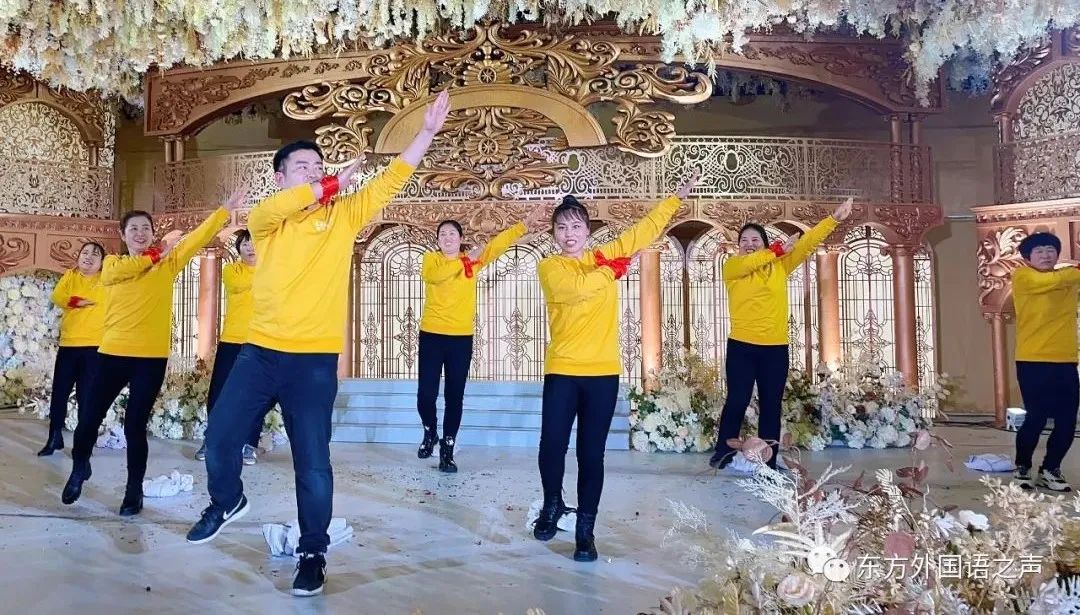 现在让我们手牵手、肩并肩,让我们跳起来,让我们唱起来,展现东方老师的别样风采。