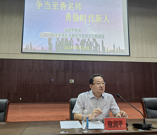 寇润平校长以校训、校风、教风、学风为基调,以落实立德树人根本任务为主线,以四有教师品质为基准,提出了与全体教师共勉的德行、使命、格局、本领、情怀、仁爱的关键词,并要求2023级同学强化自我认知、学会自我调节、保持自我发展的期许。为一中新生新一学年的学习明确了目标,为学校新一学年的工作展开指引了方向。