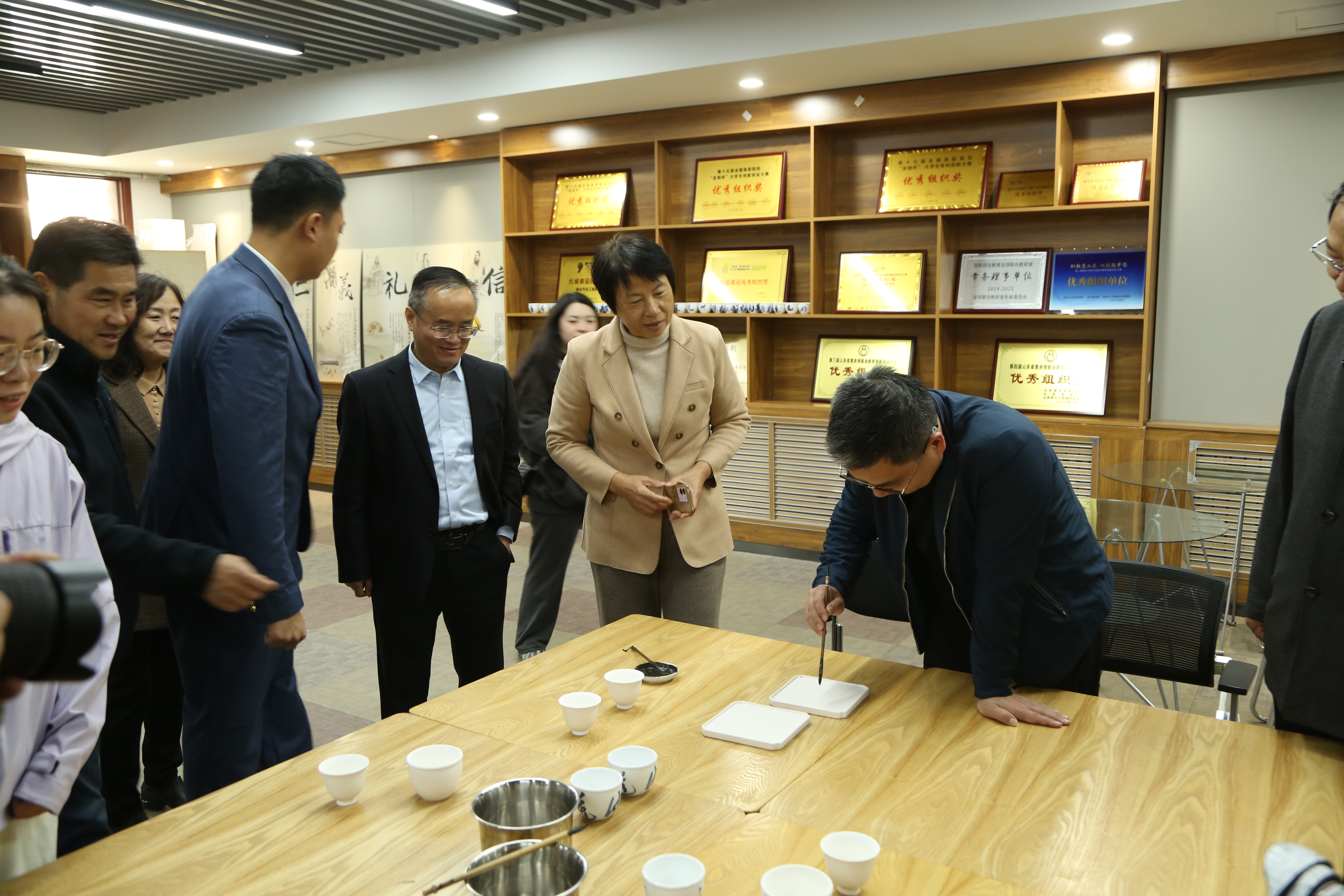来自烟台市各区县的教育部门代表、中小学负责人120余人走进学院研学基地,沉浸式体验了特色劳动实践课程。在 D 区 3 号楼,“我是小小乘务员” 航空 VR 体验课程中,参会人员戴上 VR 设备,仿佛置身真实机舱,感受航空服务的规范流程;“我是客舱小卫士” 课程则通过航空舱实体体验,讲解安全防护知识,展现职业场景的实用性。D 区 3 号楼二楼的 “我是机器人操控员” 课程,让大家亲手操作机器人完成简单任务,直观感受工业科技的魅力;“瓷器 & 文房四宝” 课程则将传统文化与劳动实践结合,传递传统技艺的精髓。
