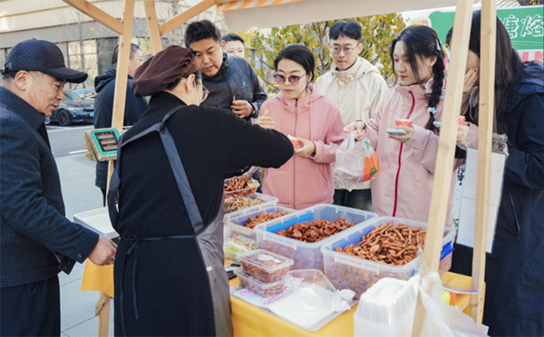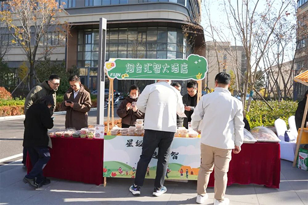 9:00起,惠企集市正式开门迎客,20家企业摊位前人头攒动、互动热烈。