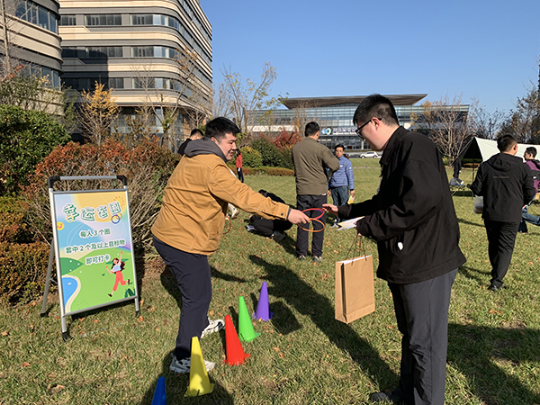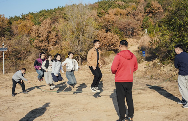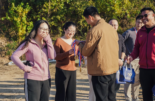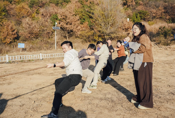 10个趣味打卡点为活动增添了不少欢乐氛围,参会人员积极参与各项挑战,集章兑换心仪礼品,现场欢声笑语不断。午后的岿山拓展训练更是将活动推向高潮,拔河比赛中队员们齐心协力、奋勇争先,啦啦队呐喊助威声震山谷;跳绳挑战里,大家步调一致、默契配合,充分展现了团队协作的力量;集体爬山途中,大家相互鼓劲、携手登顶,在欣赏秋日美景的同时,也加深了彼此的情谊。活动最后,全员合影留念,为此次“干货+趣味”兼具的活动画上圆满句号。