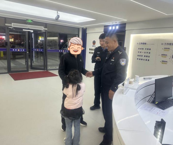 11月9日16时30分许,警务站接群众报警称:在科教文化主题教育基地娱乐场附近,1名小男孩找不到家长了。值班民警迅速赶赴该区域走访查找,正巧遇到了该男孩的姐姐。原来,两个娃在乐园游玩时与姥爷走失,弟弟因乱跑被群众“捡到”,送至警务站;姐姐则在原地等待。民警电话联系孩子们的父母,但手机无法接通。随后,民警根据孩子们提供的信息,成功与其爷爷取得联系。半小时后,孩子姥爷匆匆前来将孩子接走,喜悦之情无以言表,握住民警的手连声表示感谢。