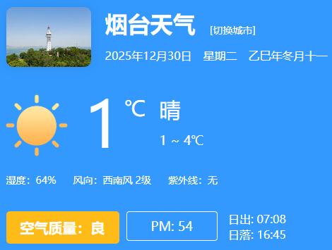 东部海域(开发区至牟平区)将有0.5米的轻浪,风浪向 北 ;平均水温:4.7-6.3℃;